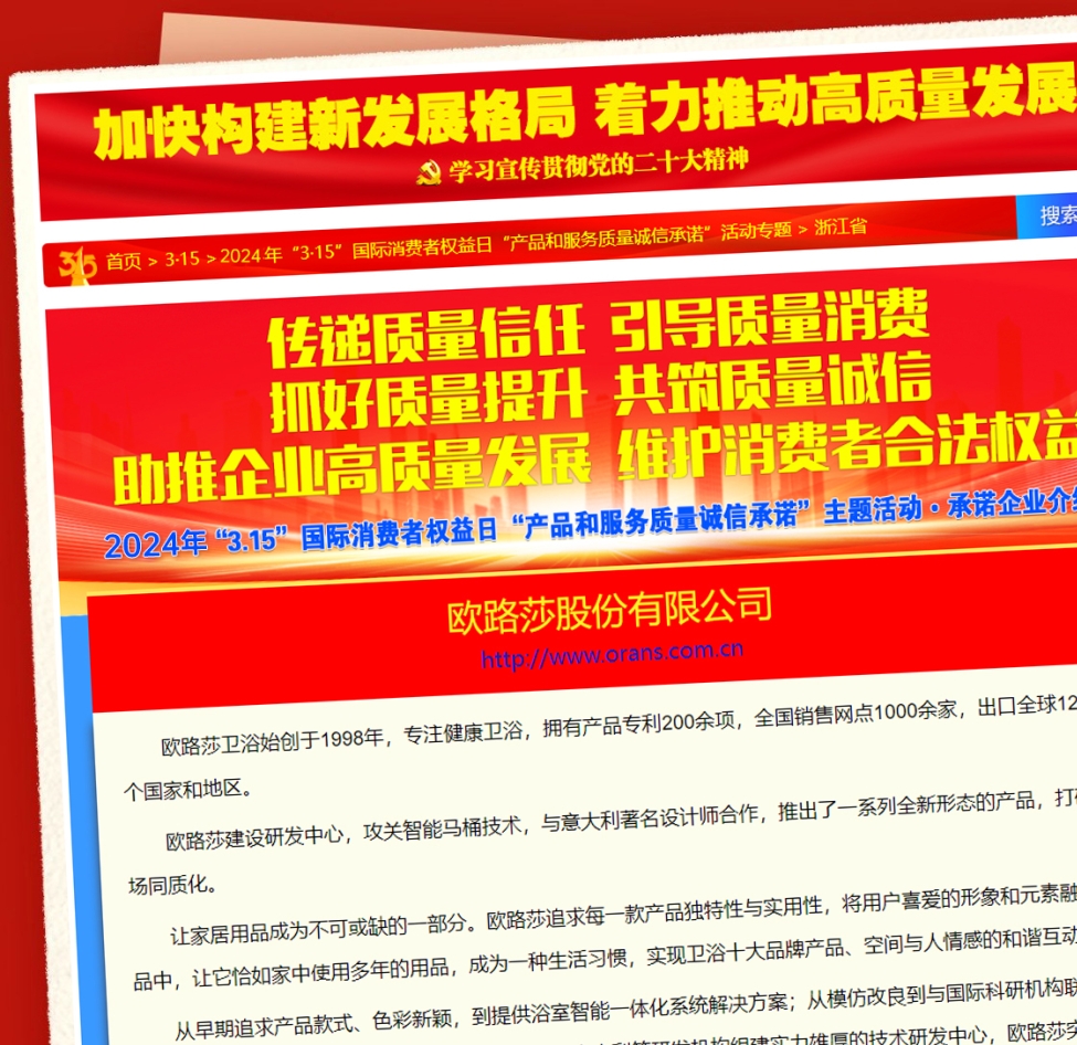 質敬3·15 歐路莎衛浴斬獲四項質量大獎
