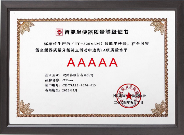 時間是丈量奮進者足跡的尺子,榮譽是鼓舞實干者前進的動力。過去半年里,歐路莎衛浴的強勁實力和卓越表現,獲得了多方認可,不僅贏得廣大消費者的信賴,還成功攬獲了2024 德國 iF 設計獎、2024德國GDA設計獎、2024德國紅點設計獎、2024年全國智能坐便器產品質量分級試點5A級、全國產品和服務質量誠信示范企業、全國質量誠信領先企業、全國衛生潔具行業質量領先品牌、全國質量檢驗信得過產品等眾多殊榮,可謂實至名歸。