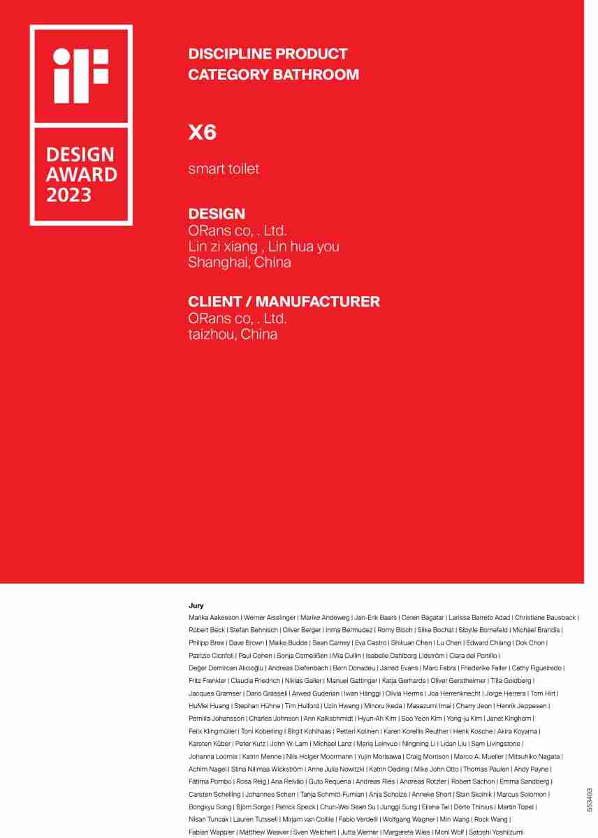 日前,備受全球設計界矚目的2023德國IF設計大獎正式公布,歐路莎衛浴旗下產品——X6系列智能馬桶成功入圍,斬獲2023 iF 設計獎。