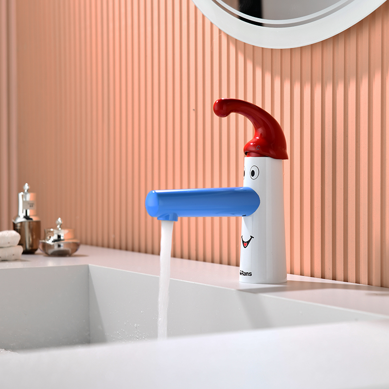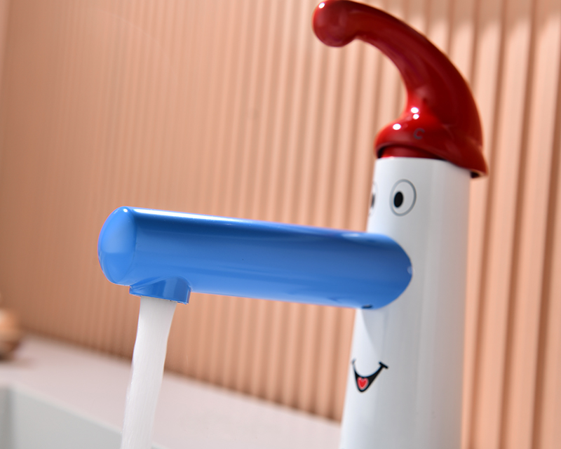 符合兒童人體工學(xué)設(shè)計,藍(lán)鼻子110cm加長出水口,微傾斜水流,自己洗手更輕松