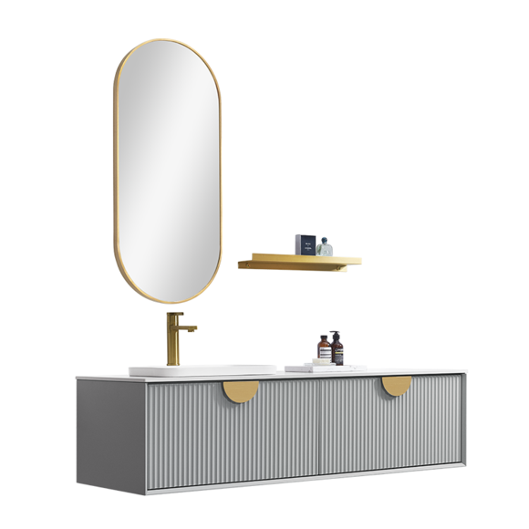 波紋線條元素給衛(wèi)浴空間增添了幾分靈動,與鎏金圓弧拉手巧妙搭配,盡顯優(yōu)雅時尚。