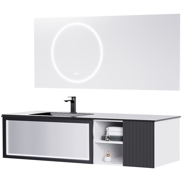 主柜顏色:柜體啞光白,門板啞光黑,抽面啞黑鋁框玻璃帶燈