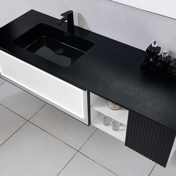 一體成型啞光深臺盆,打破傳統設計,創新火燒石紋理,高級質感,沉穩不乏時尚,凝聚家居生命力。