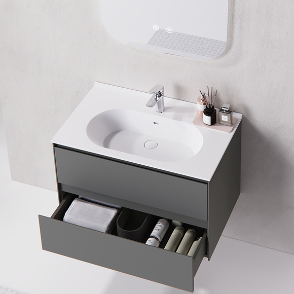 人造石一體成型臺面,表面光澤晶瑩柔和、質地細膩,污物易擦凈,方便清潔維護。